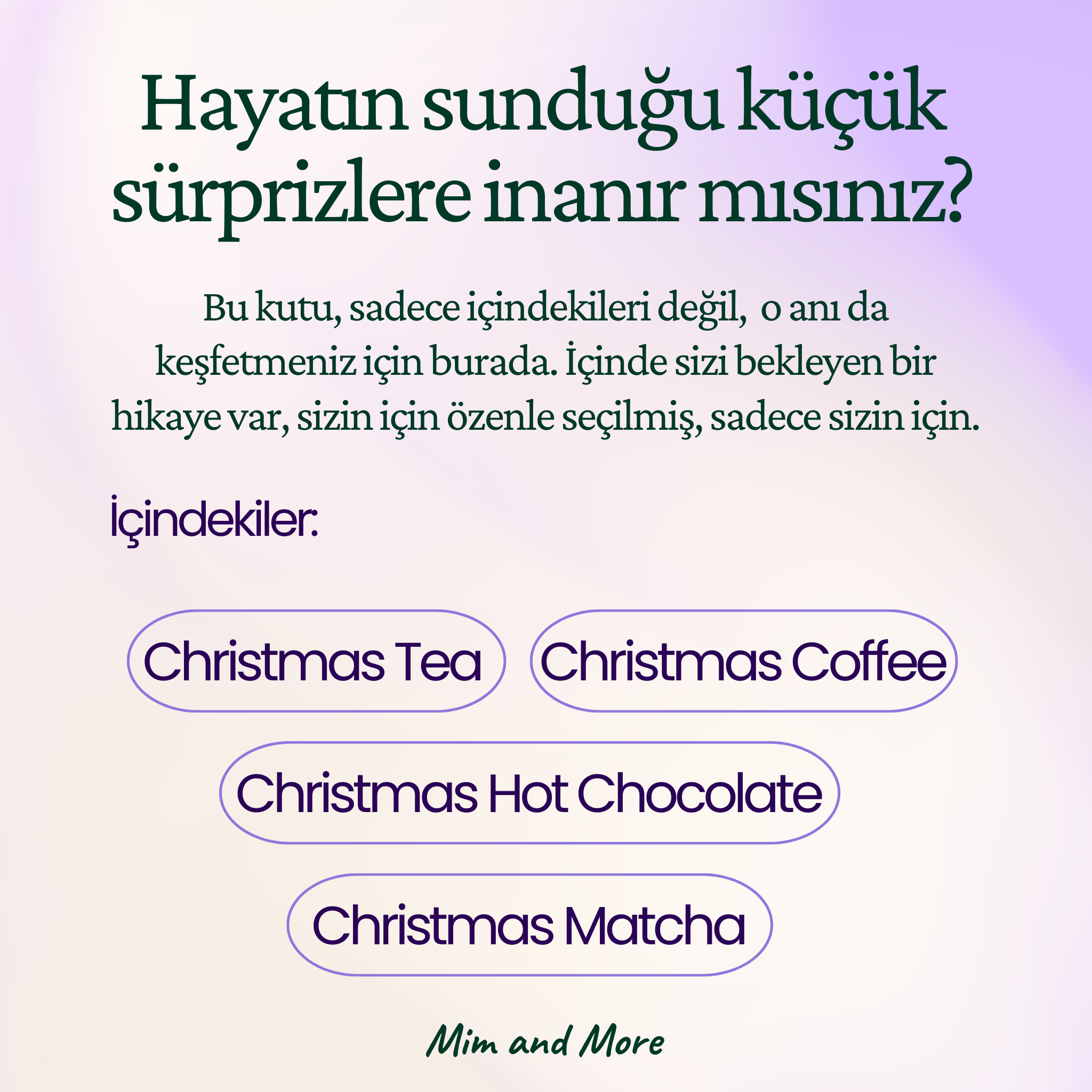 Mim and More firması özel olarak hazırladığımız reçetelerimiz ve kendi harmanladığımız çaylarımız ile birlikte sizlere eşsiz deneyimler ve lezzetler sunmak için her gün daha fazla özveriyle birlikte firmamızı büyütmeye ve ilklere imza atmaya devam ediyoruz.