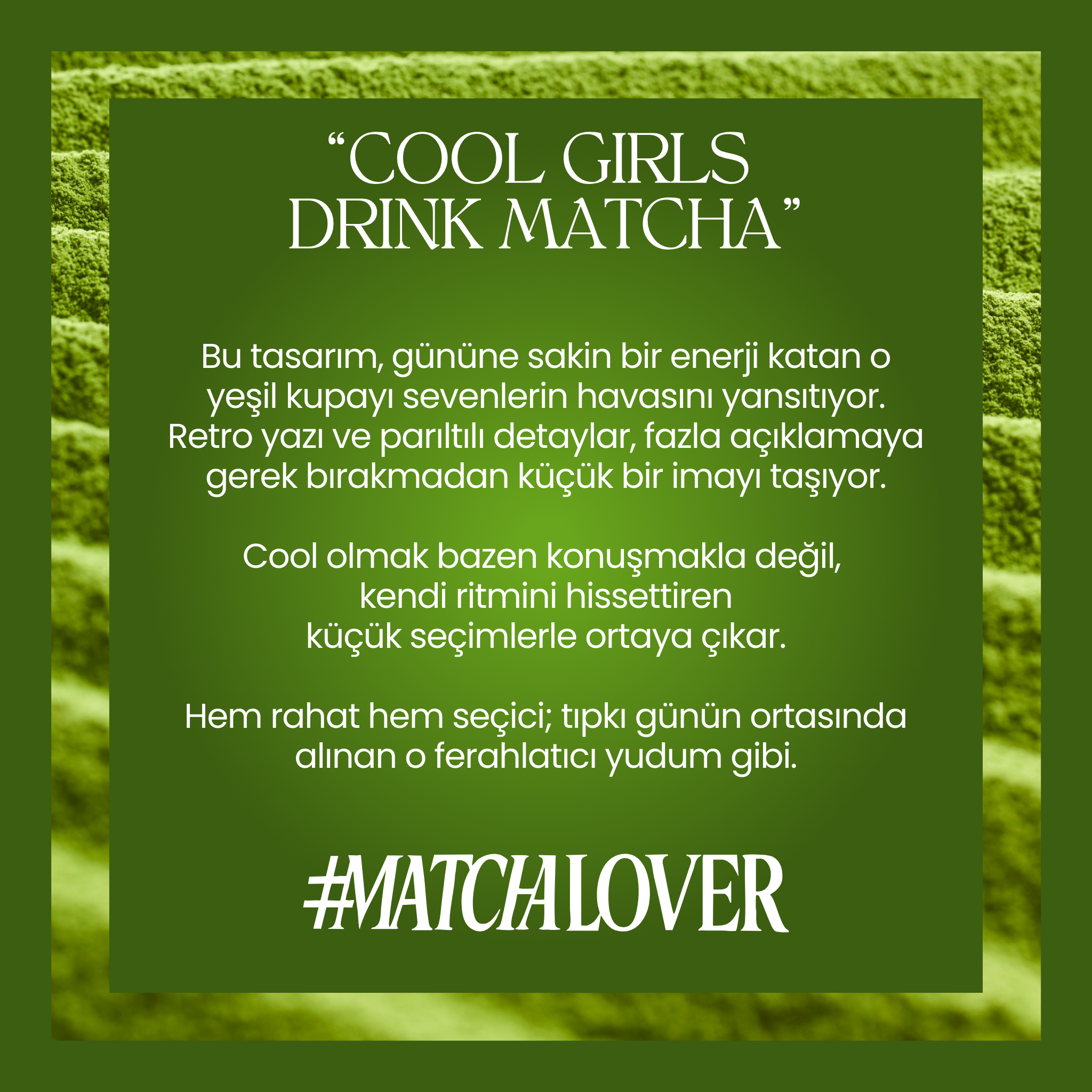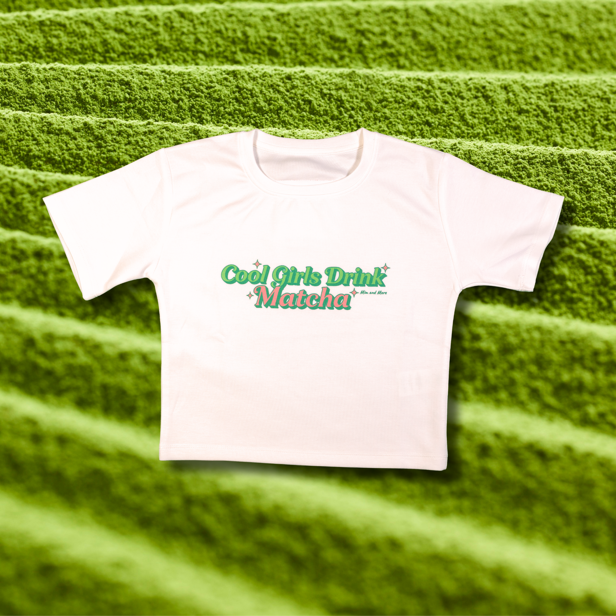 Cool Girls Drink Matcha Baskılı Crop Tişört – Modal Kumaş, Esnek ve Rahat, Kadın T-Shirt