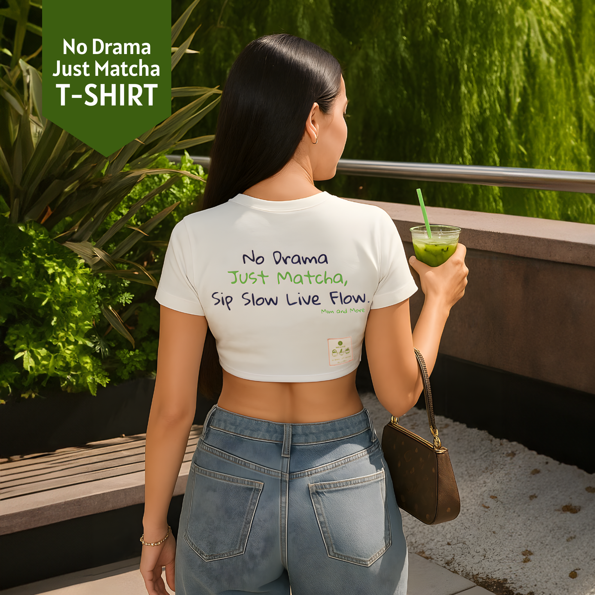 No Drama Just Matcha Crop Tişört – Modal Karışım, Esnek ve Rahat Kumaş, Baskılı Kadın T-Shirt
