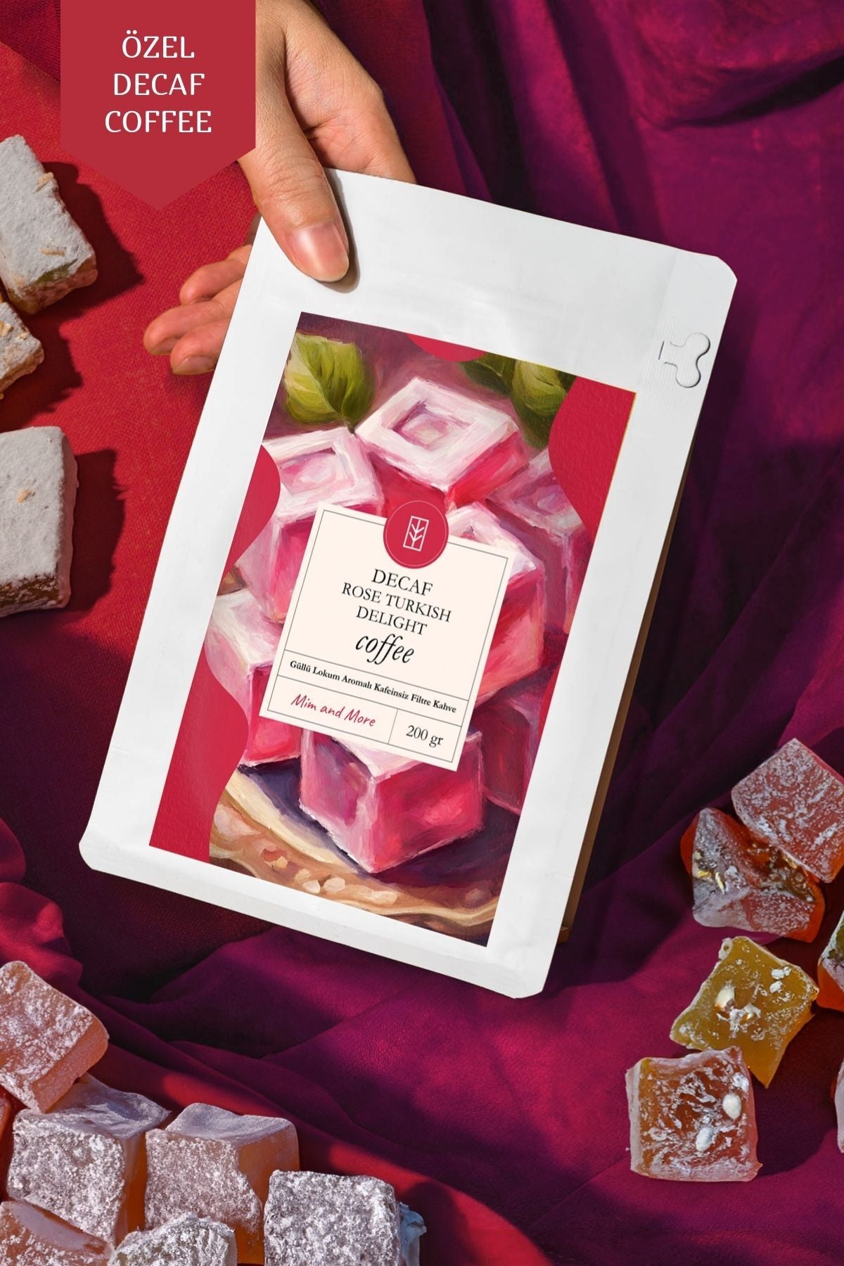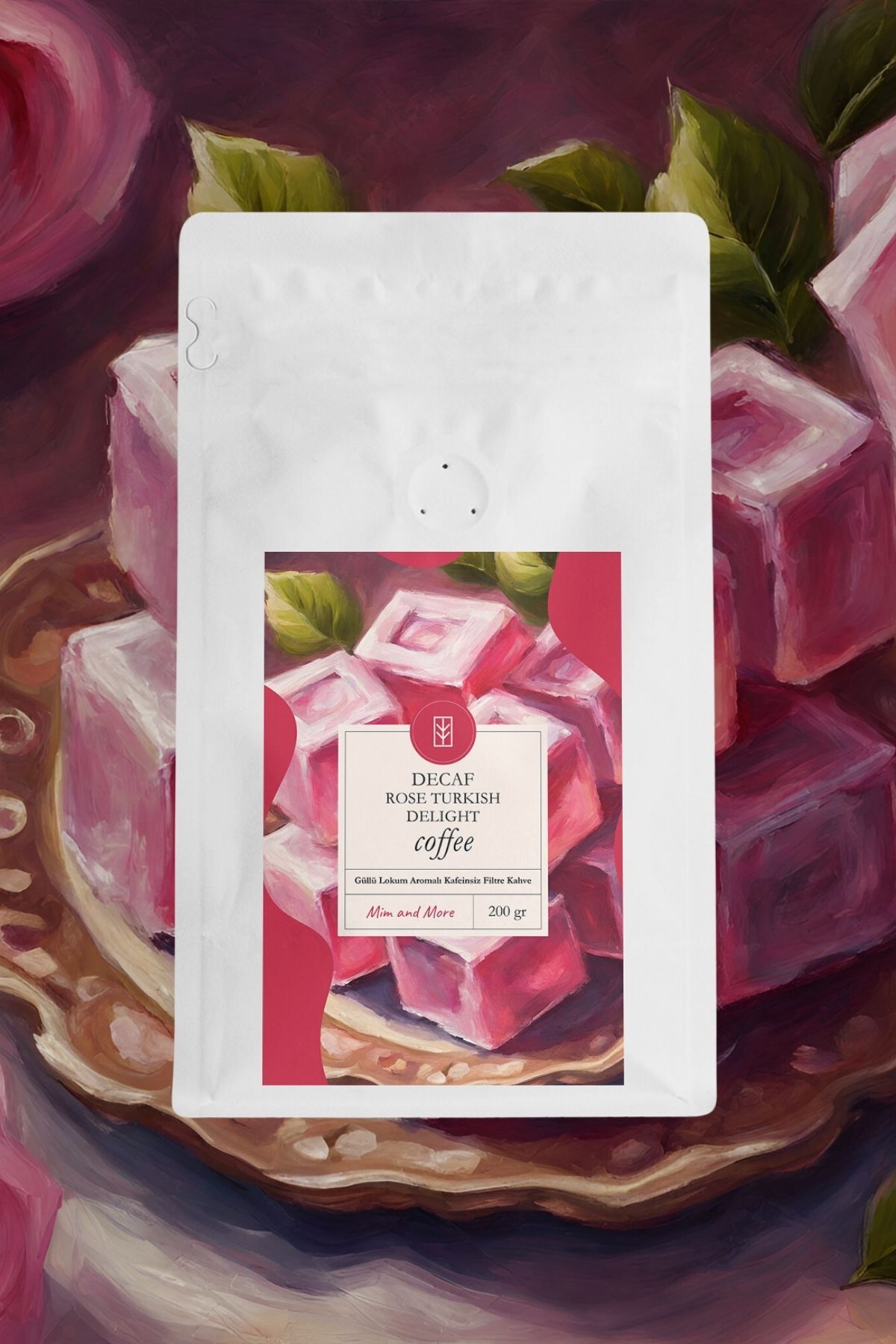 Decaf Rose Turkish Delight Coffee - Kafeinsiz Güllü Lokum Aromalı Çekirdek Kahve, 200 gr