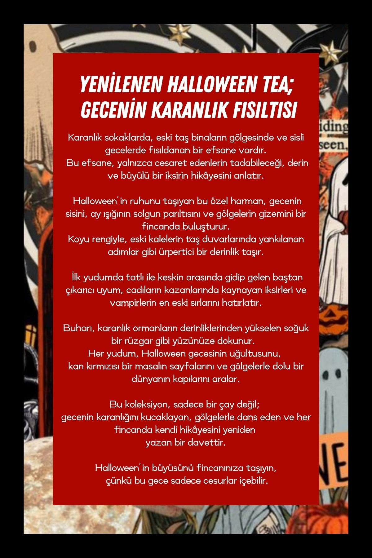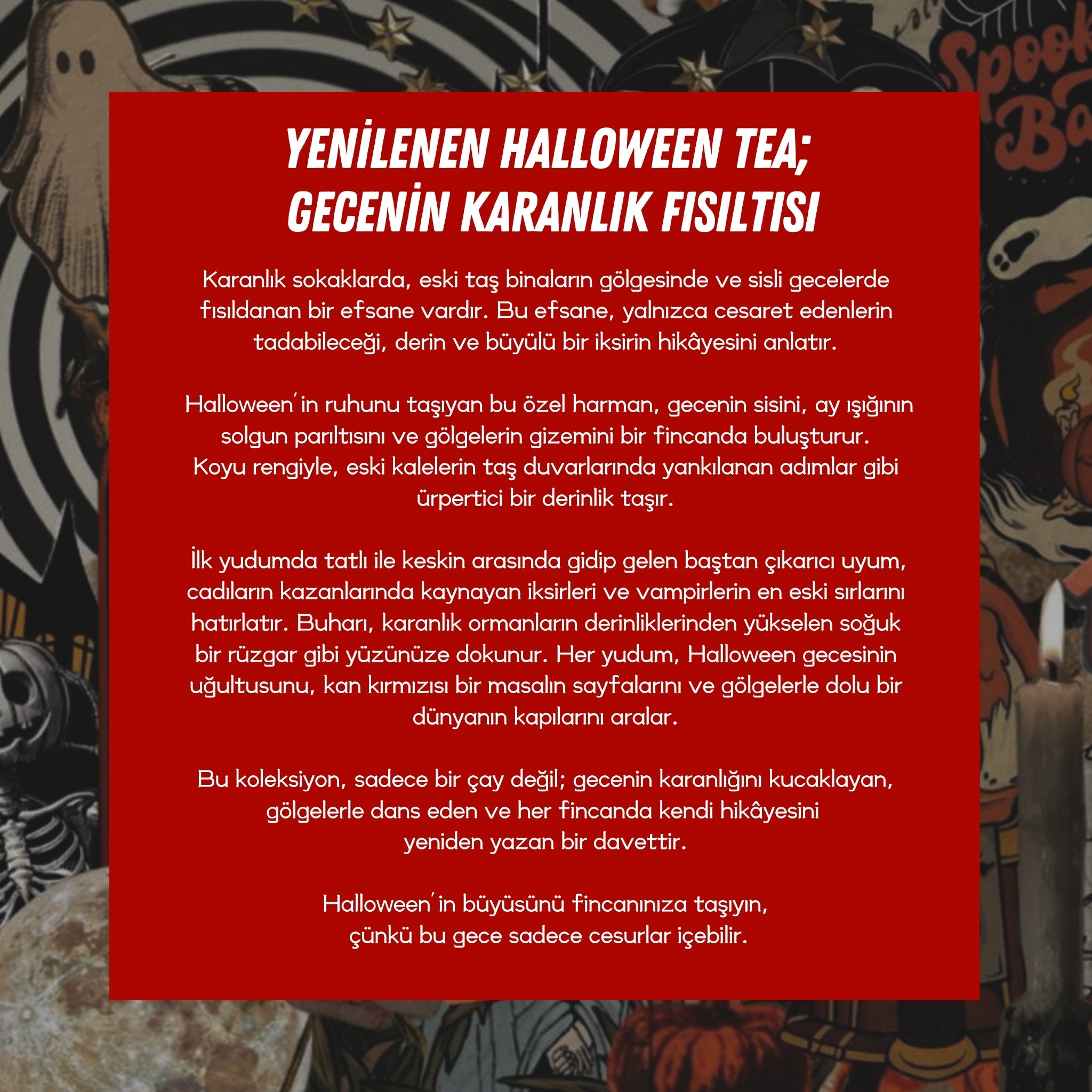 Eğer bu Cadılar Bayramı’nda sıradan hediyelerden uzaklaşıp, sevdiklerinize ve kendinize özel bir deneyim yaşatmak istiyorsanız, Mim and More Halloween Collection tam size göre. Balkabağı aromalı çay ve kahveler, taze çekirdekli kahve, eğlenceli kart oyunları ve şık set seçenekleriyle bu koleksiyon, her anınızı daha keyifli hale getirecek.