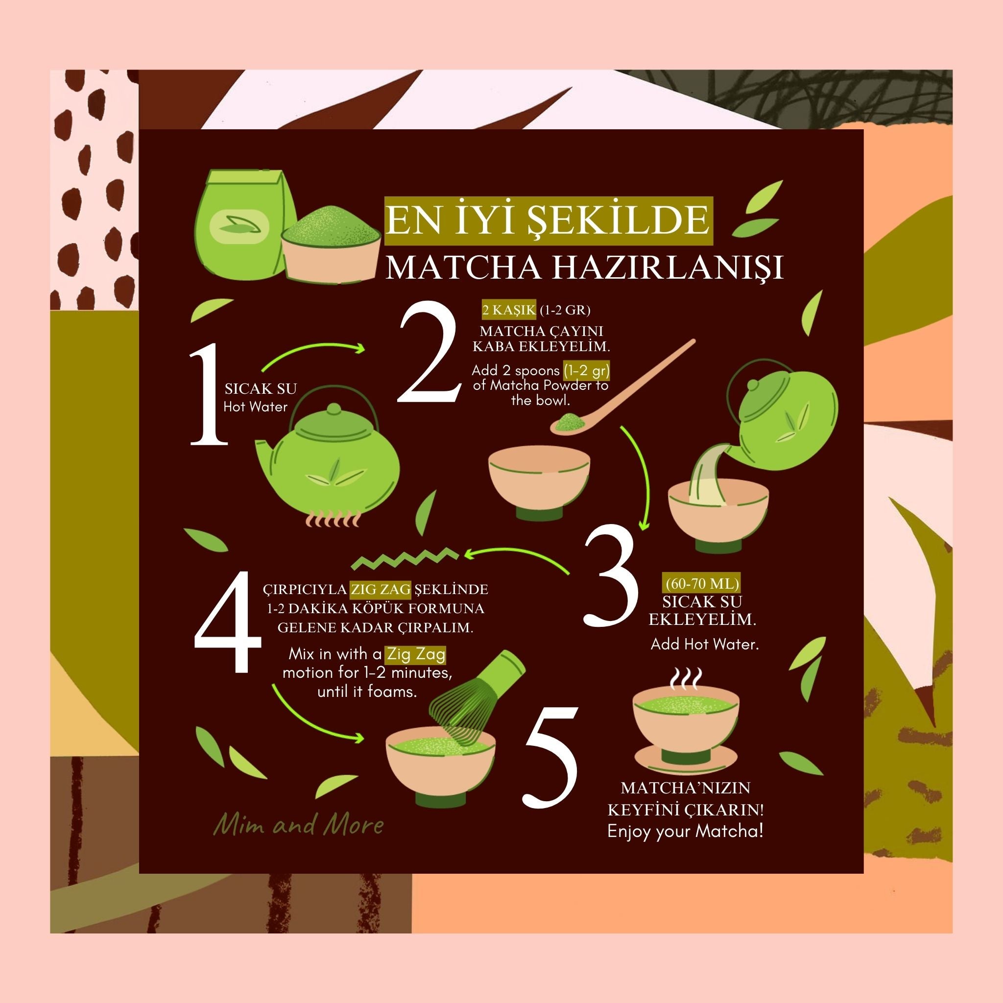 Matcha'yı içeceklerinizde kullanmadan önce sıcak su ve çırpıcı ile açmanız gerekmektedir fakat isterseniz matchayı sıcak su ile hazırladıktan sonra soğuk içecek ürünlerinize ekleyebilirsiniz.
