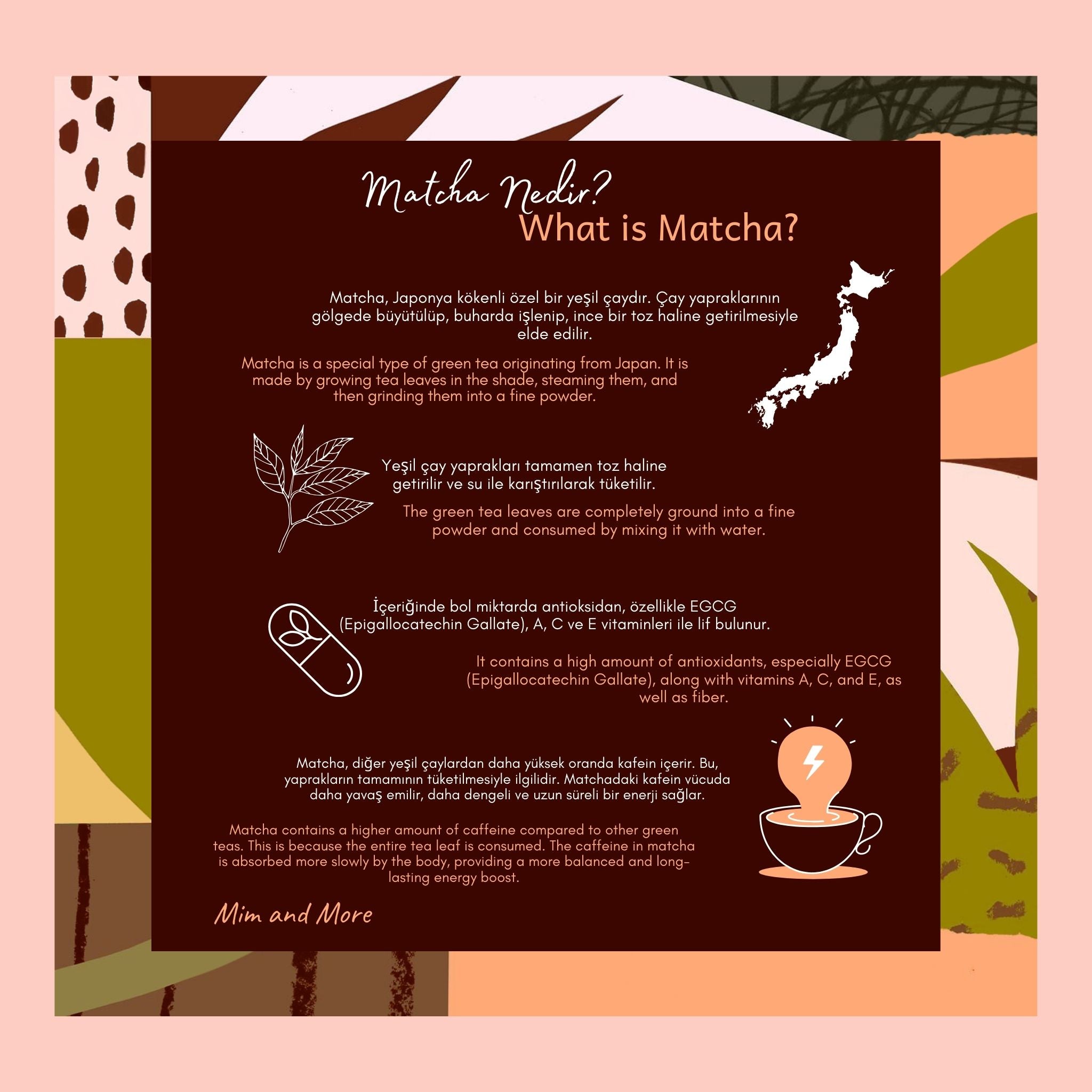 Mim and More firması olarak Türkiye’de ve belki de global çapta bir ilk olan aromalı Matcha’lara imza attık. Türkiye'de bulunan Matcha'lardan doğal yeşil rengi ve üstün kalitesiyle ayrılan Matcha çeşitlerimizi denediniz mi?