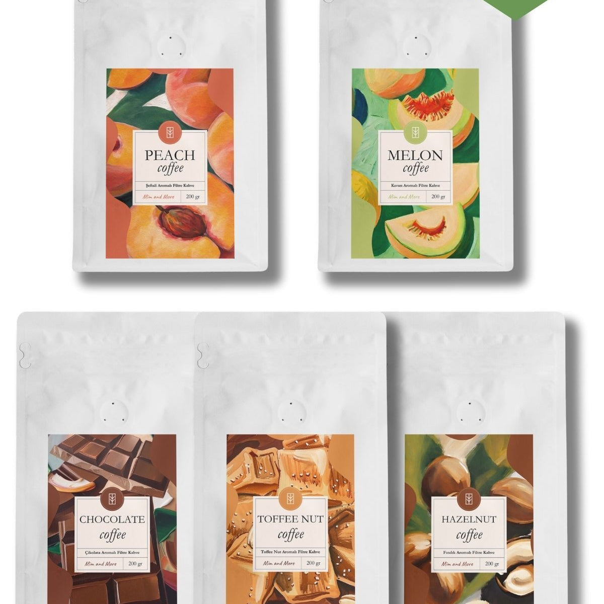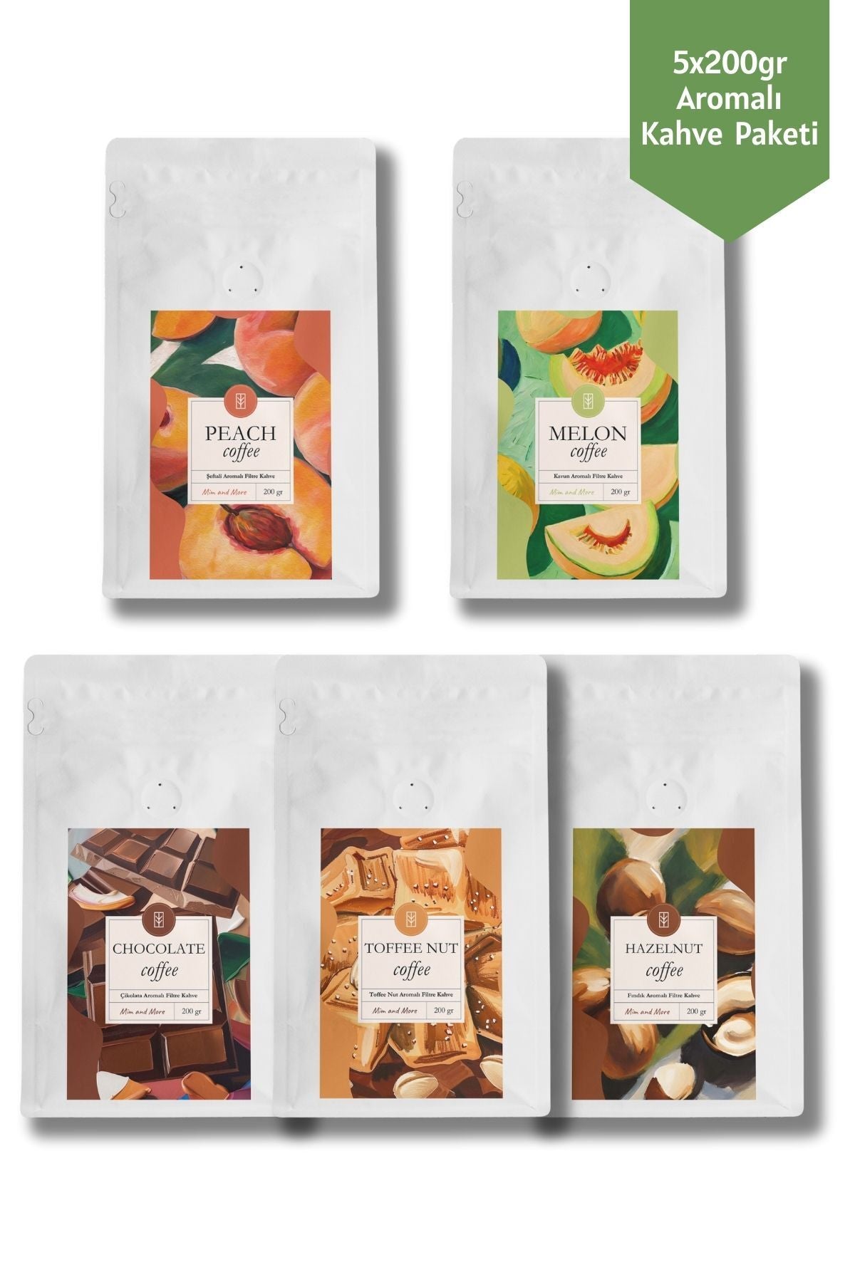 5x200gr Peach,Melon, Chocolate, Toffee Nut, Hazeln