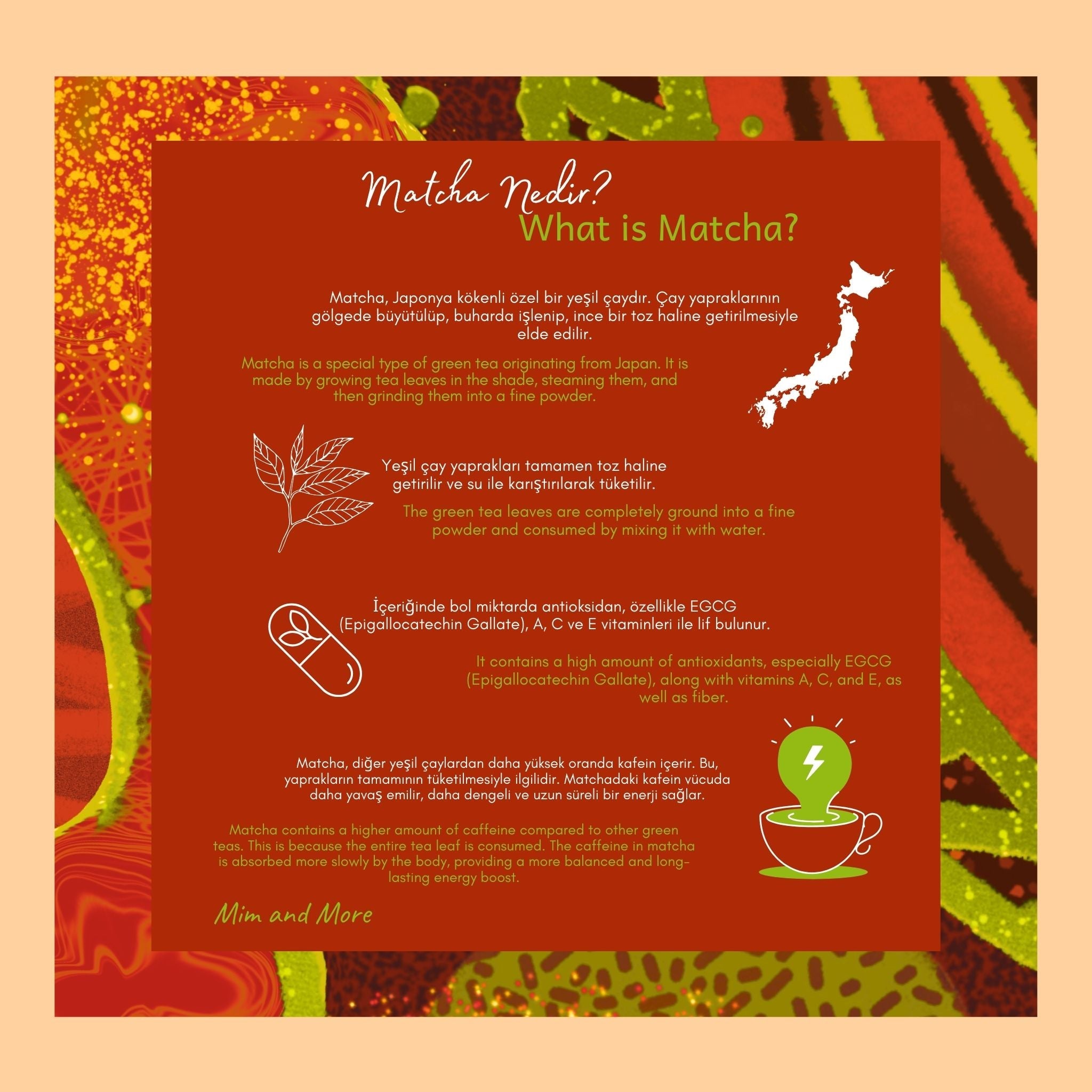 Mim and More firması olarak Türkiye’de ve belki de global çapta bir ilk olan aromalı Matcha’lara imza attık. Türkiye'de bulunan Matcha'lardan doğal yeşil rengi ve üstün kalitesiyle ayrılan Matcha çeşitlerimizi denediniz mi?
