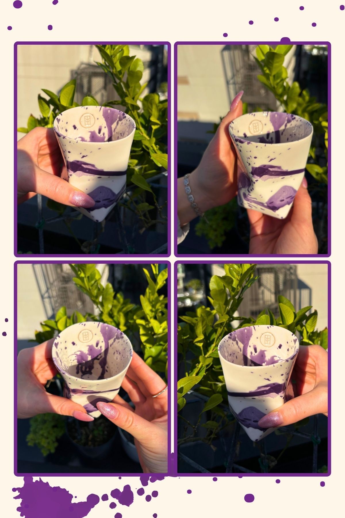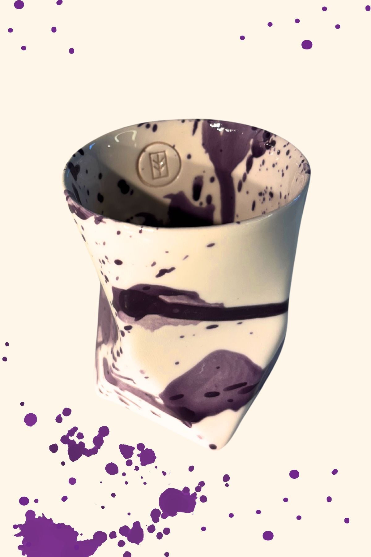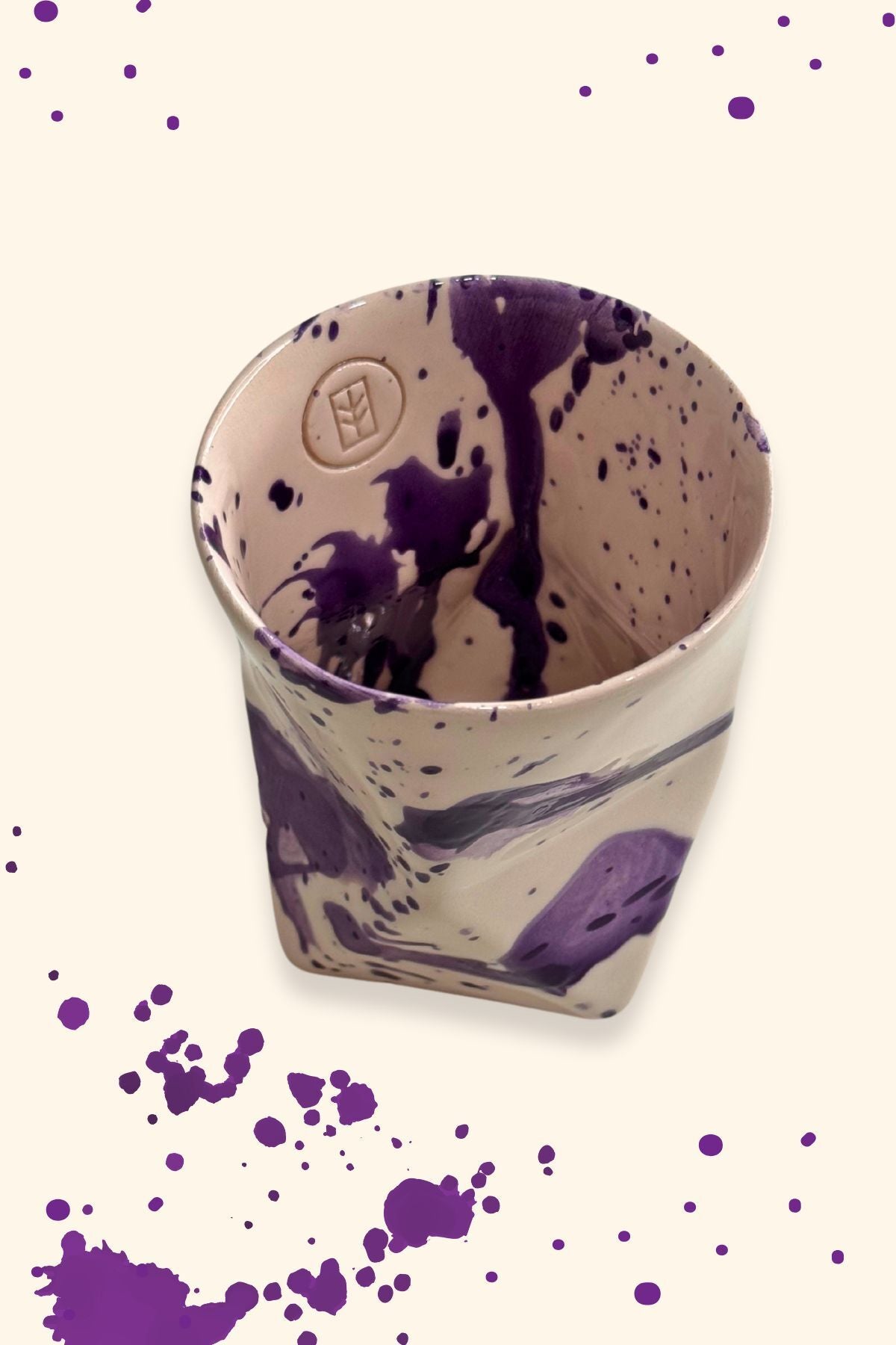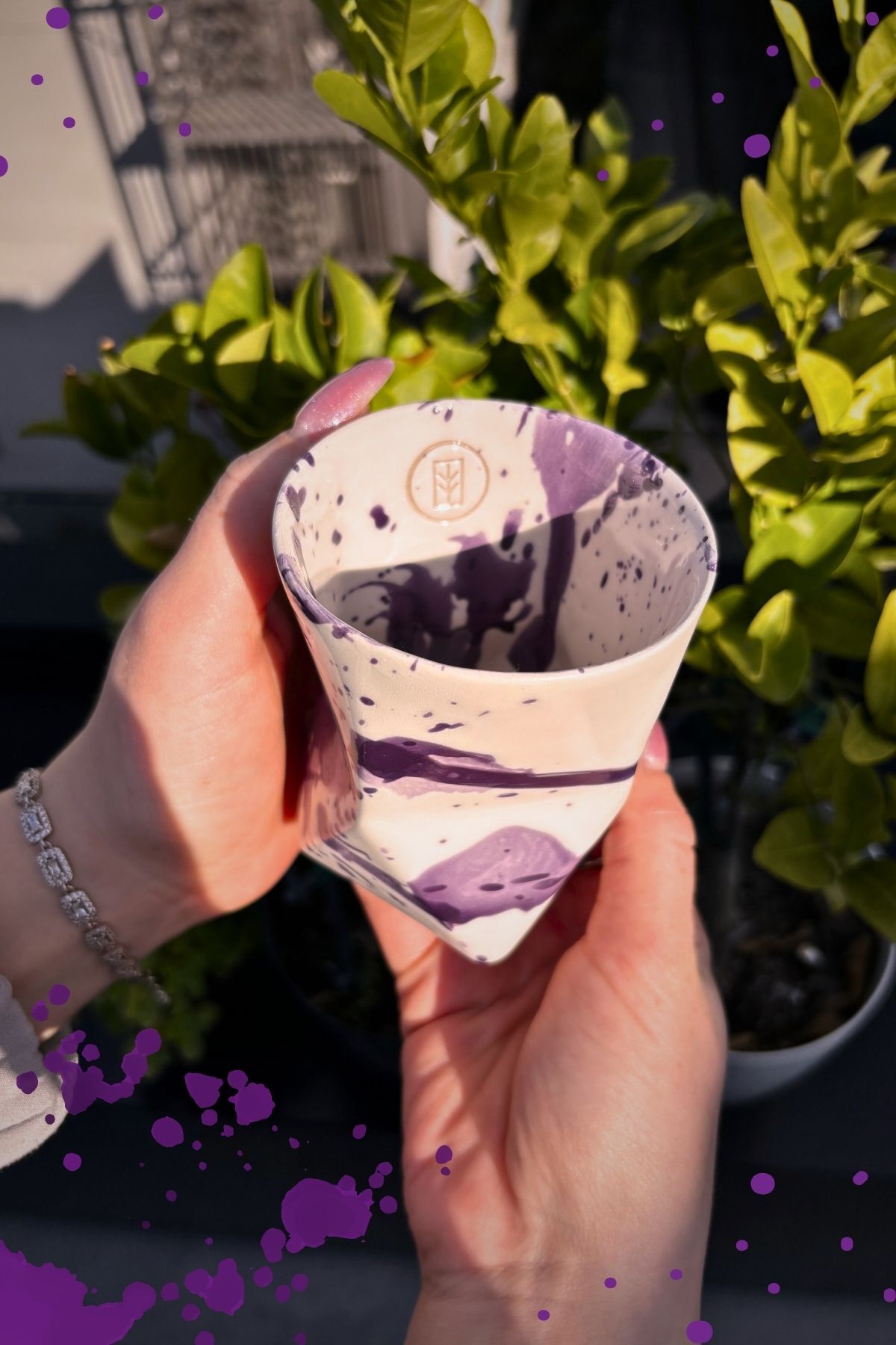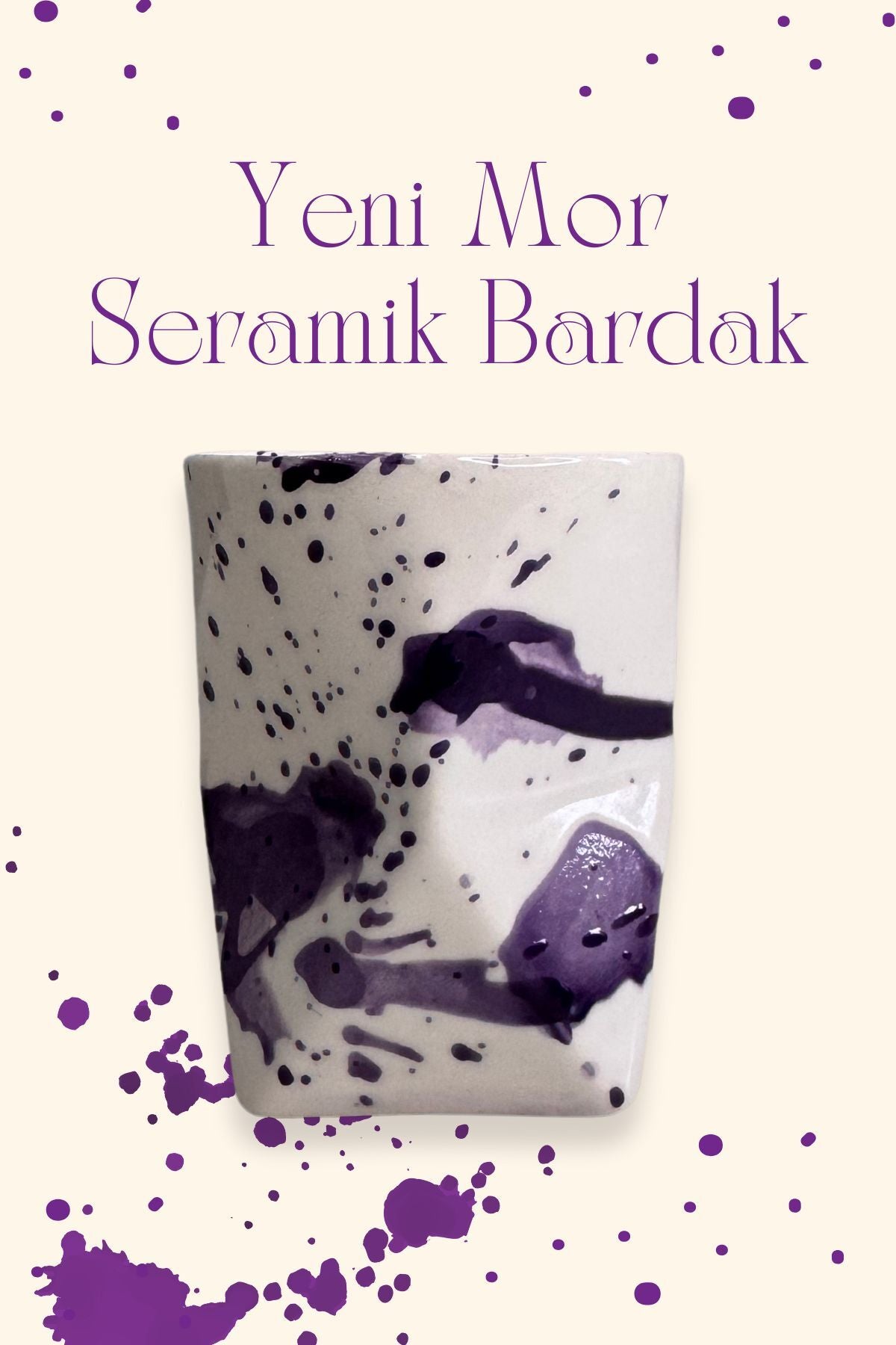 Özel Tasarım Mor Desenli El Yapımı Seramik Bardak
