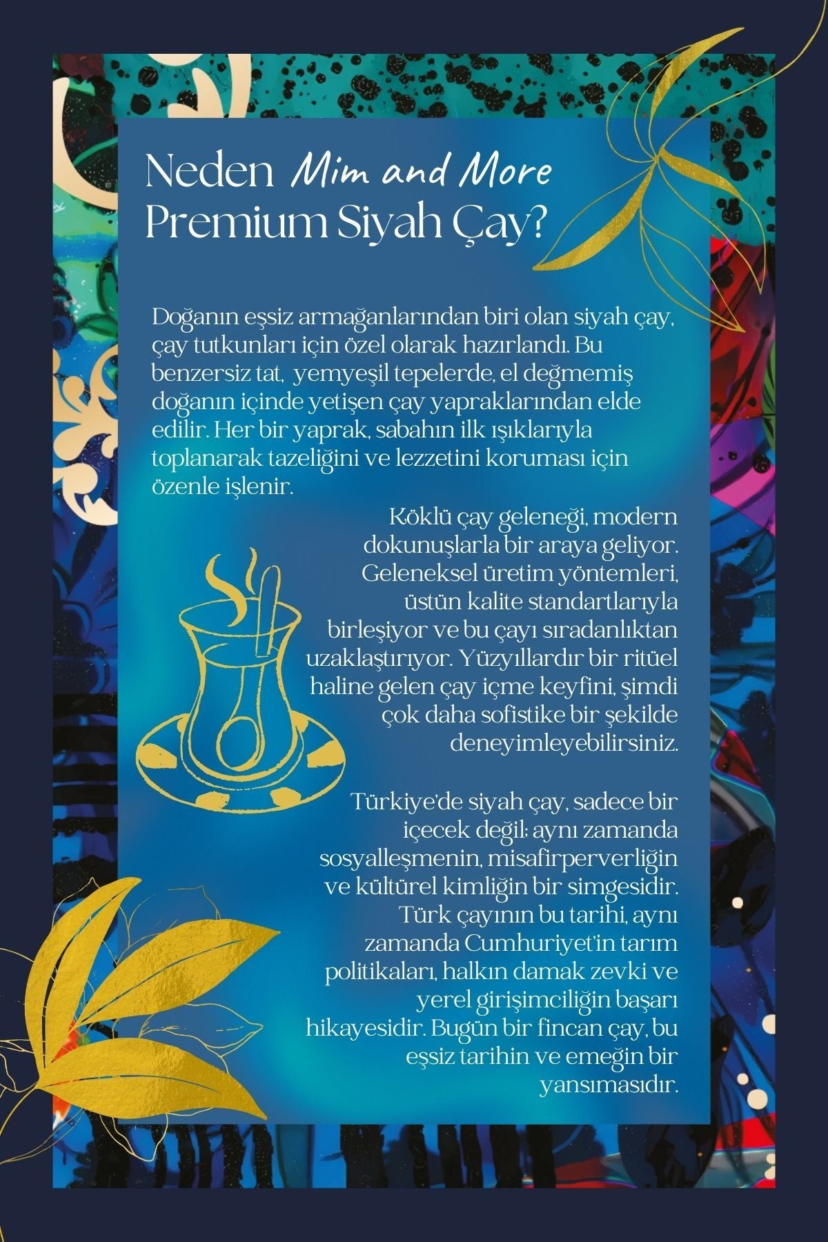 At Mim and More, we strive every day to select the finest products and enhance our blends to their full potential. As a producer, we are among the few companies in Türkiye that blend their own teas and create unique recipes for each tea.