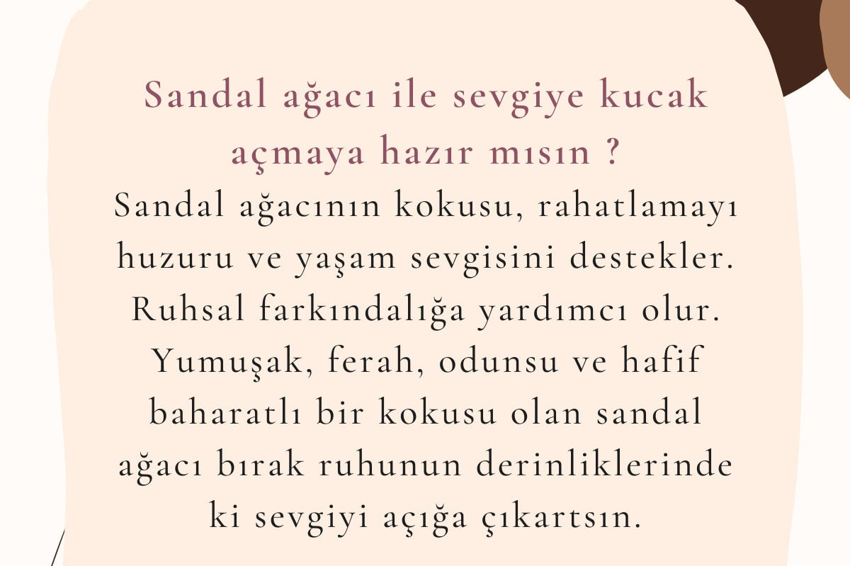 Sandalwood also eliminates unpleasant odors and emits a pleasant fragrance. This makes it suitable for both ritual and daily use. Sandalwood's woody notes add elegance and serenity to any environment.