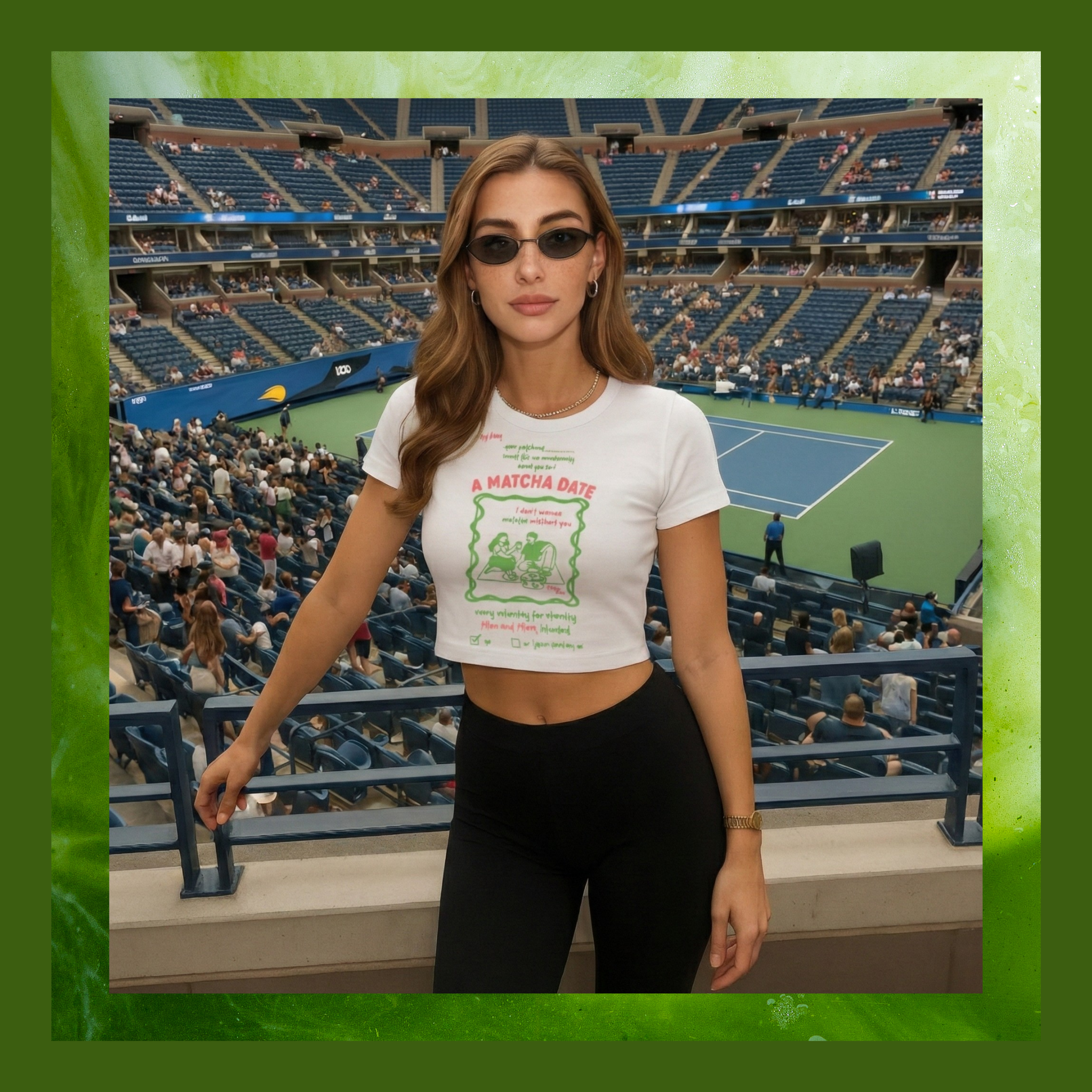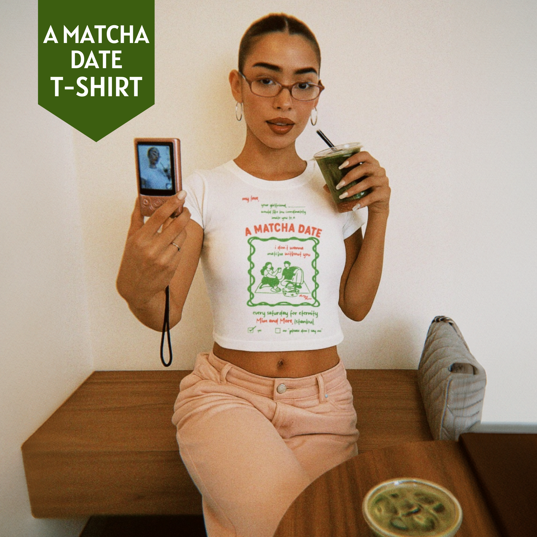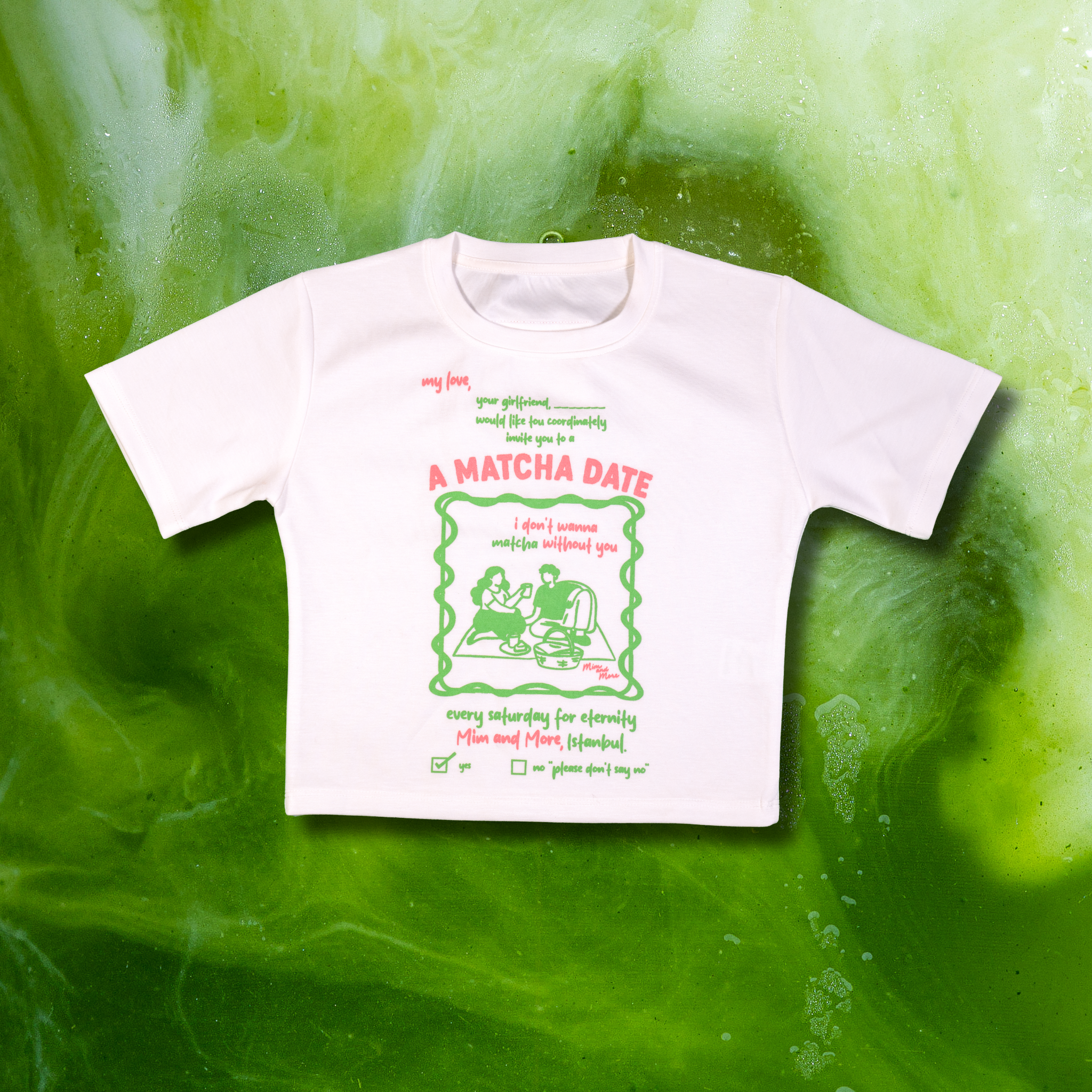 A Matcha Date Baskılı Crop Tişört – Modal Kumaş, Esnek ve Rahat, Kadın T-Shirt