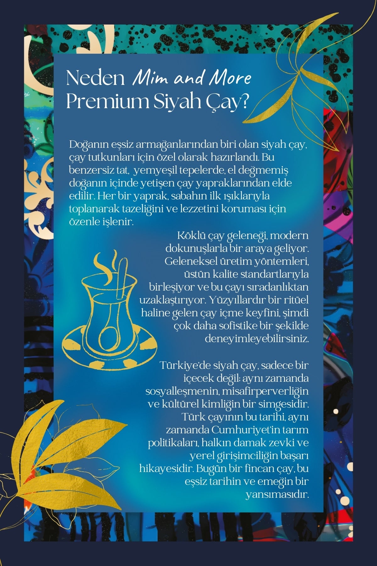 At Mim and More, we strive every day to select the finest products and enhance our blends to their full potential. As a producer, we are among the few companies in Türkiye that blend their own teas and create unique recipes for each tea.