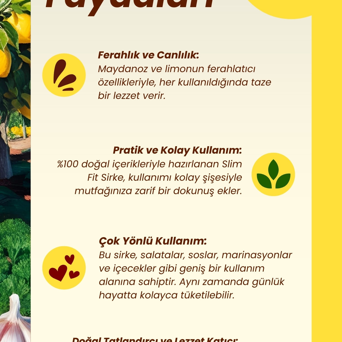 Slim Fit - Maydanoz & Limon & Sarımsak Sirkesi, Doğal Fermantasyon, %100 Doğal, Katkısız, 250 ml