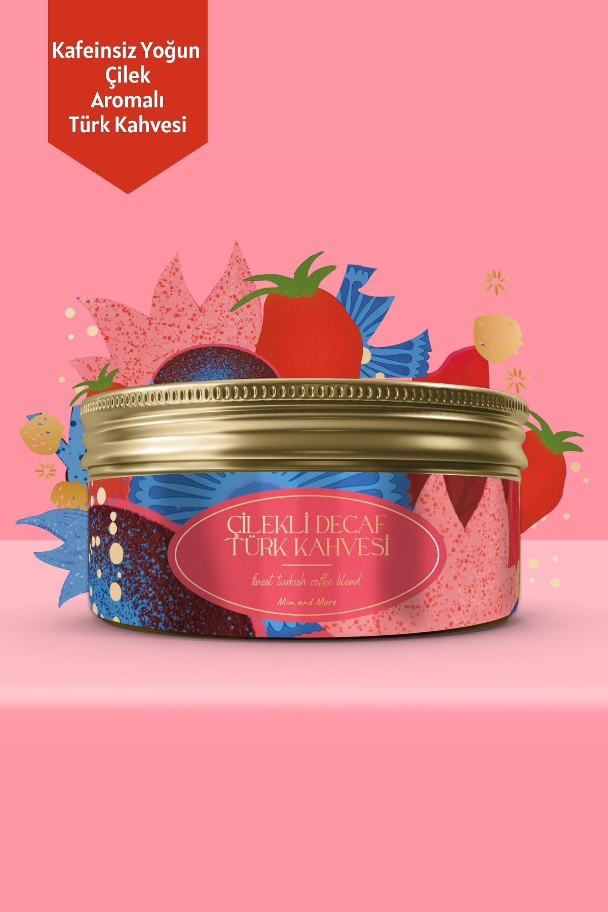 Decaf Strawberry Turkish Coffee - Kafeinsiz Çilek Aromalı Türk Kahvesi, 150 gr