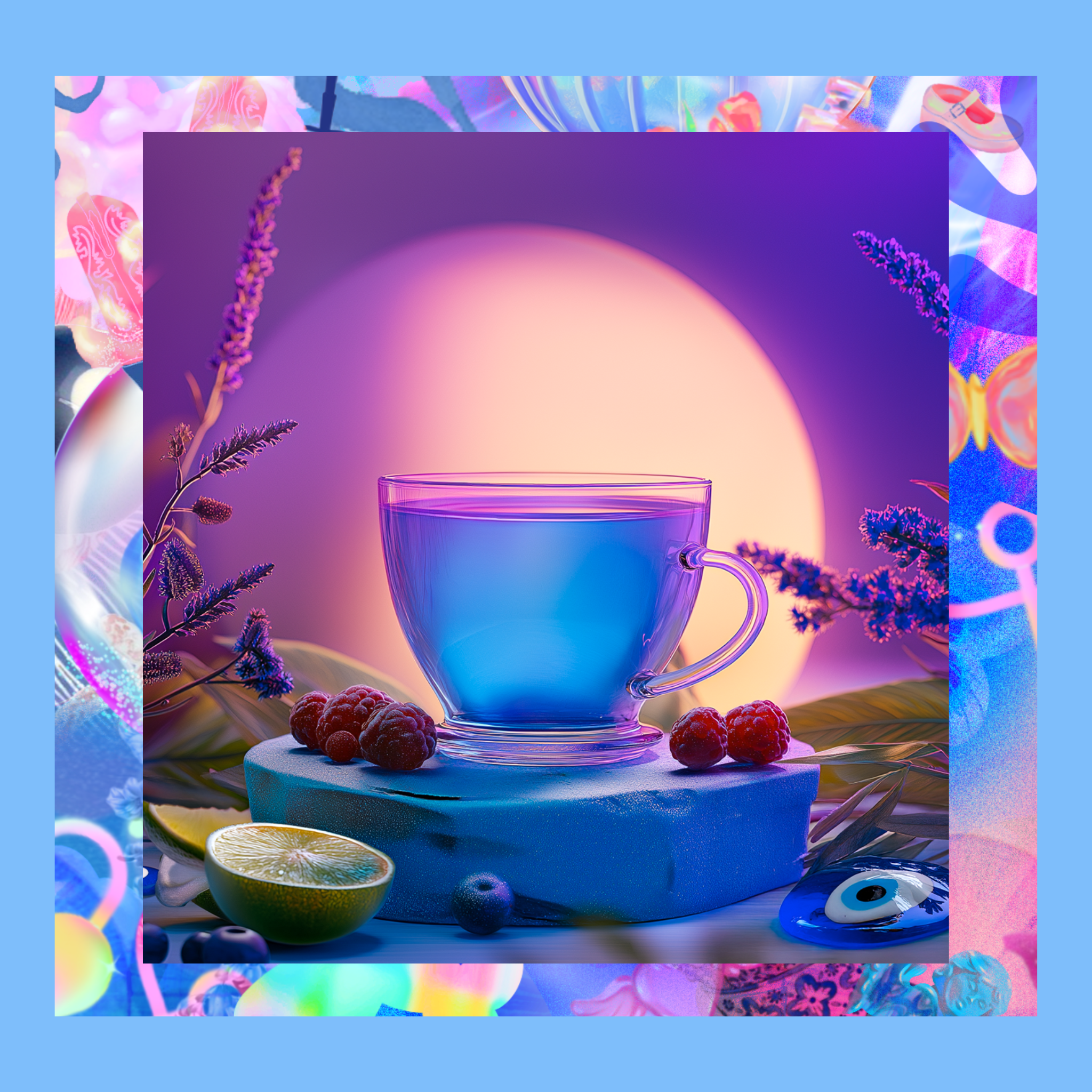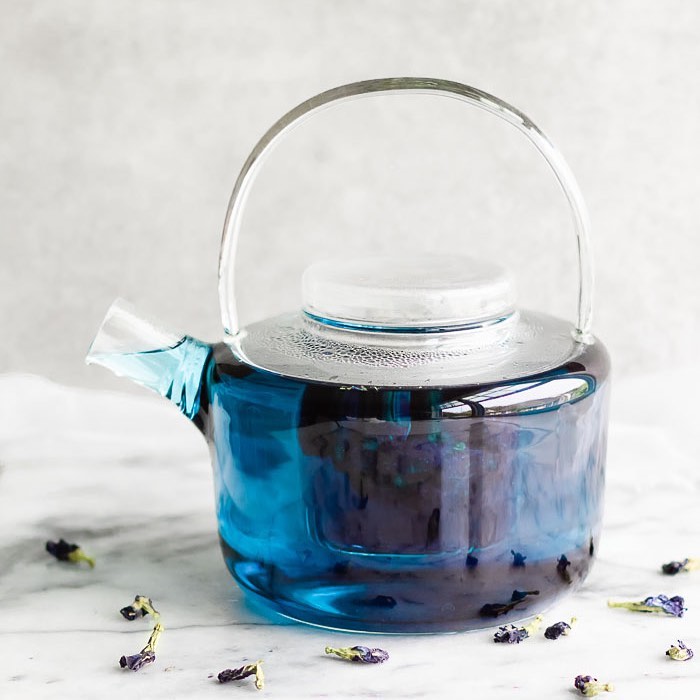 Mavi çay, içinde demlendiği suyun pH (asitlik) derecesine bağlı olarak renk değiştirmektedir. Tamamen bitkinin kendi doğal rengidir.