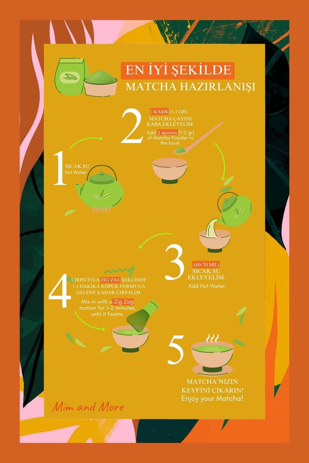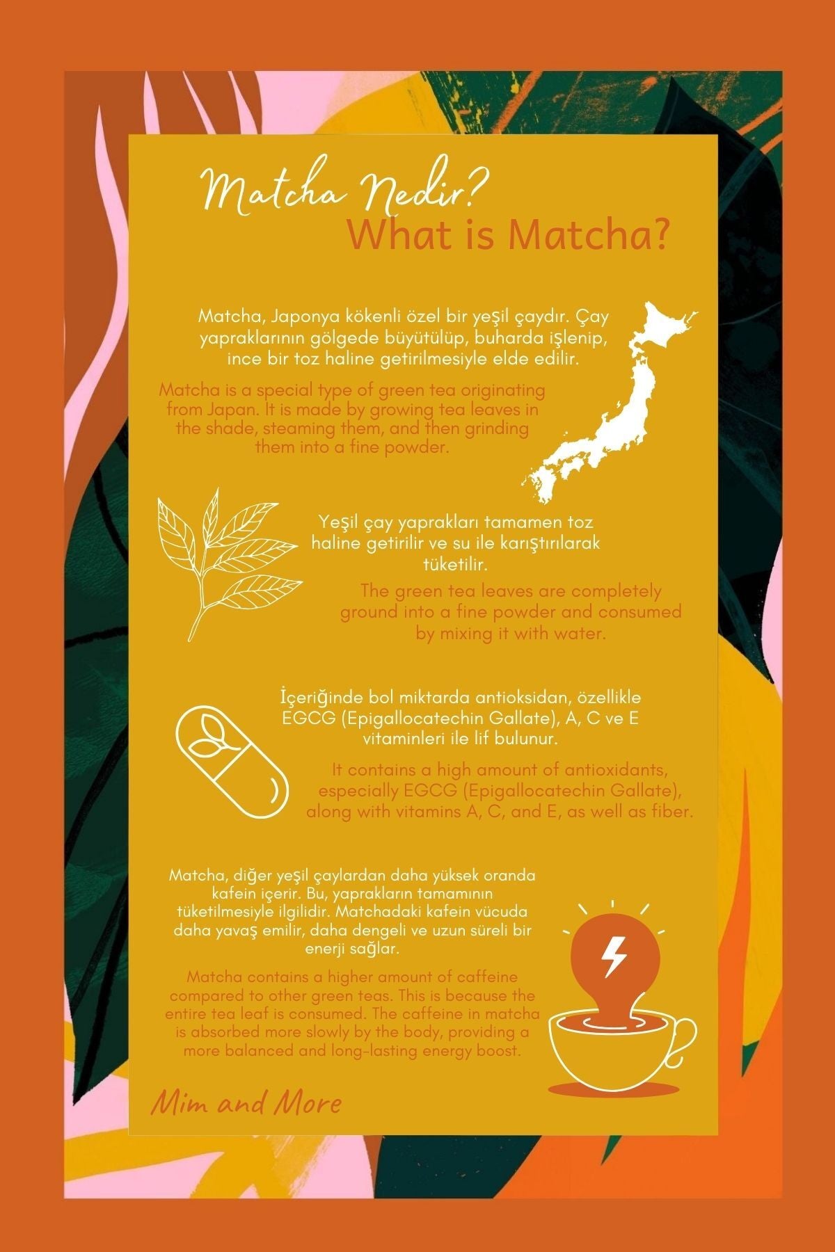 Mim and More firması özel olarak oluşturduğumuz reçetelerimiz ve kendi hazırladığımız matcha çeşitlerimiz ile birlikte sizlere eşsiz deneyimler ve lezzetler sunmak için her gün daha fazla özveriyle birlikte firmamızı büyütmeye ve ilklere imza atmaya devam ediyoruz.