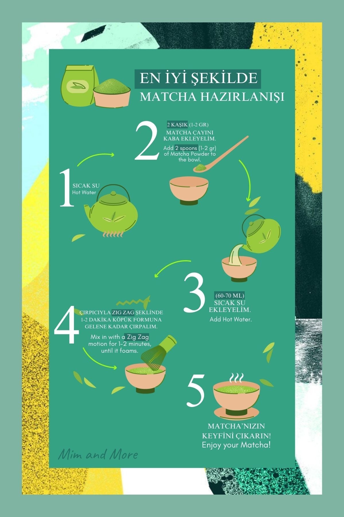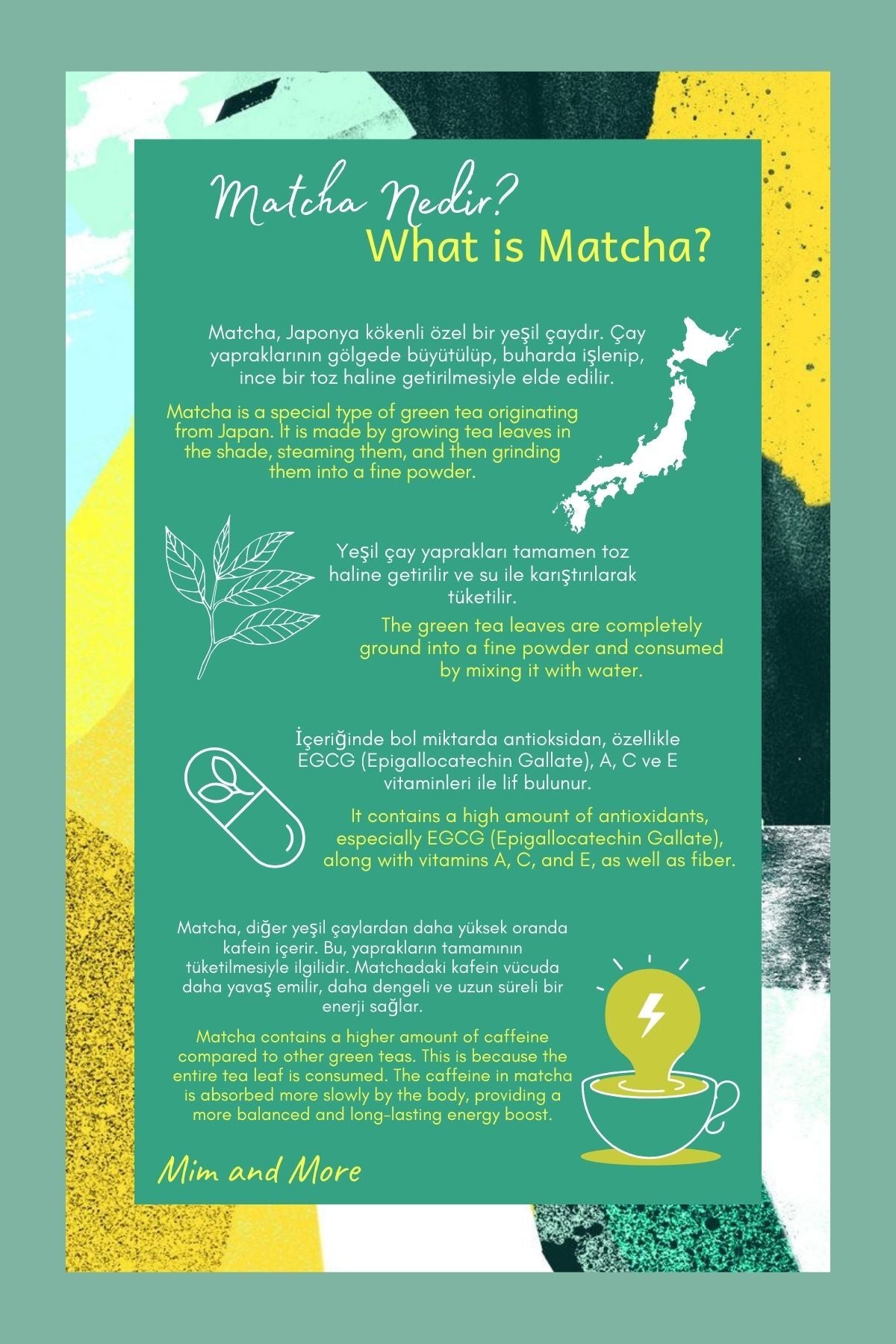 Mim and More firması özel olarak oluşturduğumuz reçetelerimiz ve kendi hazırladığımız matcha çeşitlerimiz ile birlikte sizlere eşsiz deneyimler ve lezzetler sunmak için her gün daha fazla özveriyle birlikte firmamızı büyütmeye ve ilklere imza atmaya devam ediyoruz.