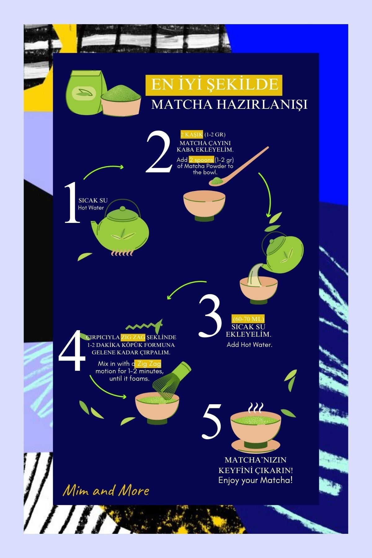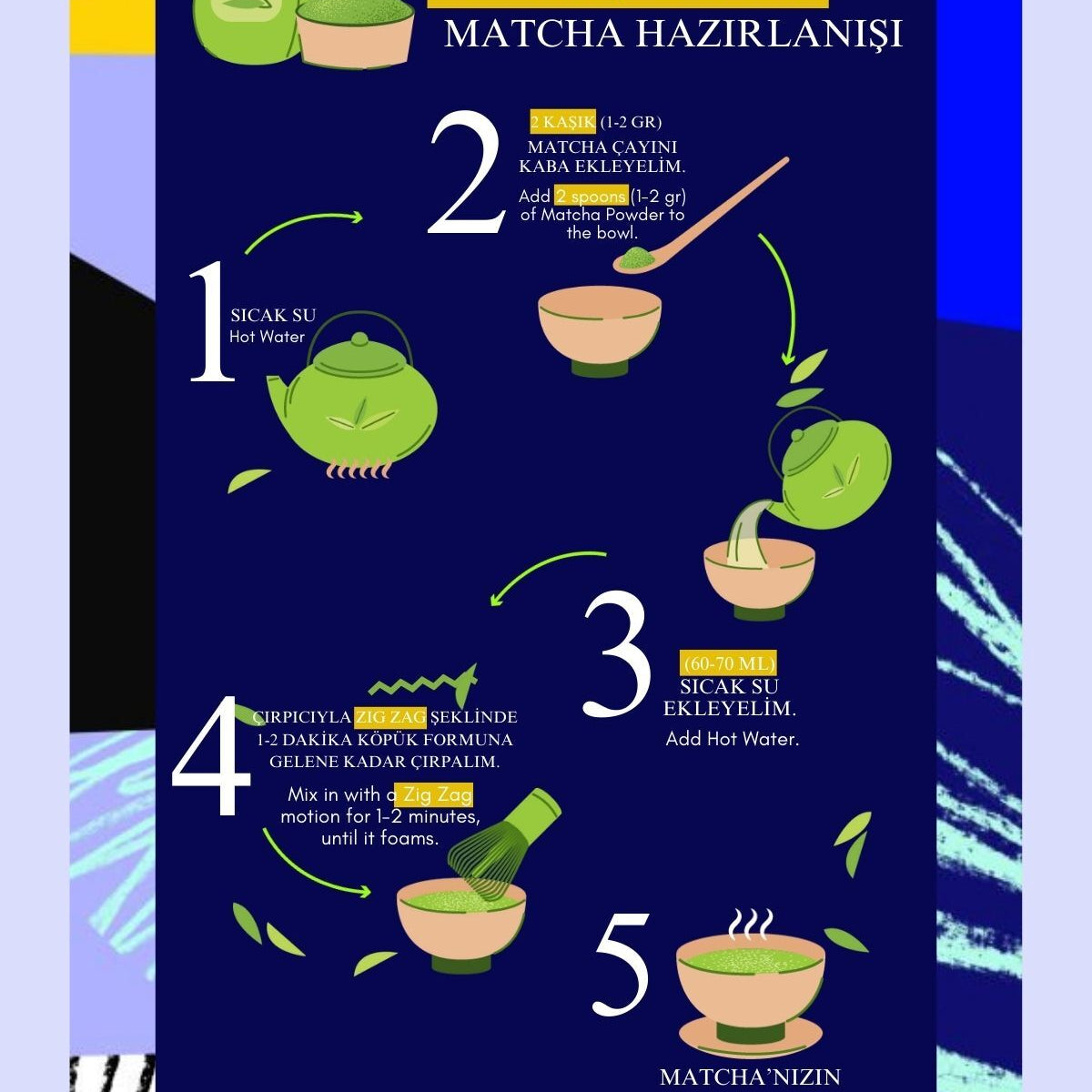 Matcha'yı içeceklerinizde kullanmadan önce sıcak su ve çırpıcı ile açmanız gerekmektedir fakat isterseniz matchayı sıcak su ile hazırladıktan sonra soğuk içecek ürünlerinize ekleyebilirsiniz.