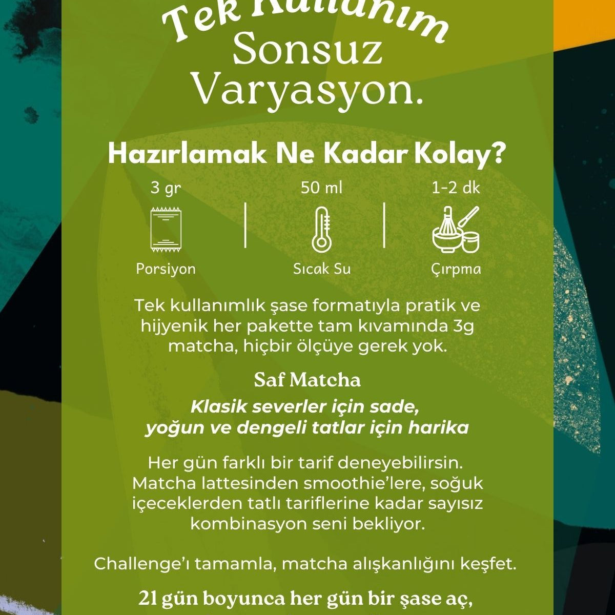 Saf Matcha Tekli Şase – 12 Günlük Özel Paket, 12x3 gr